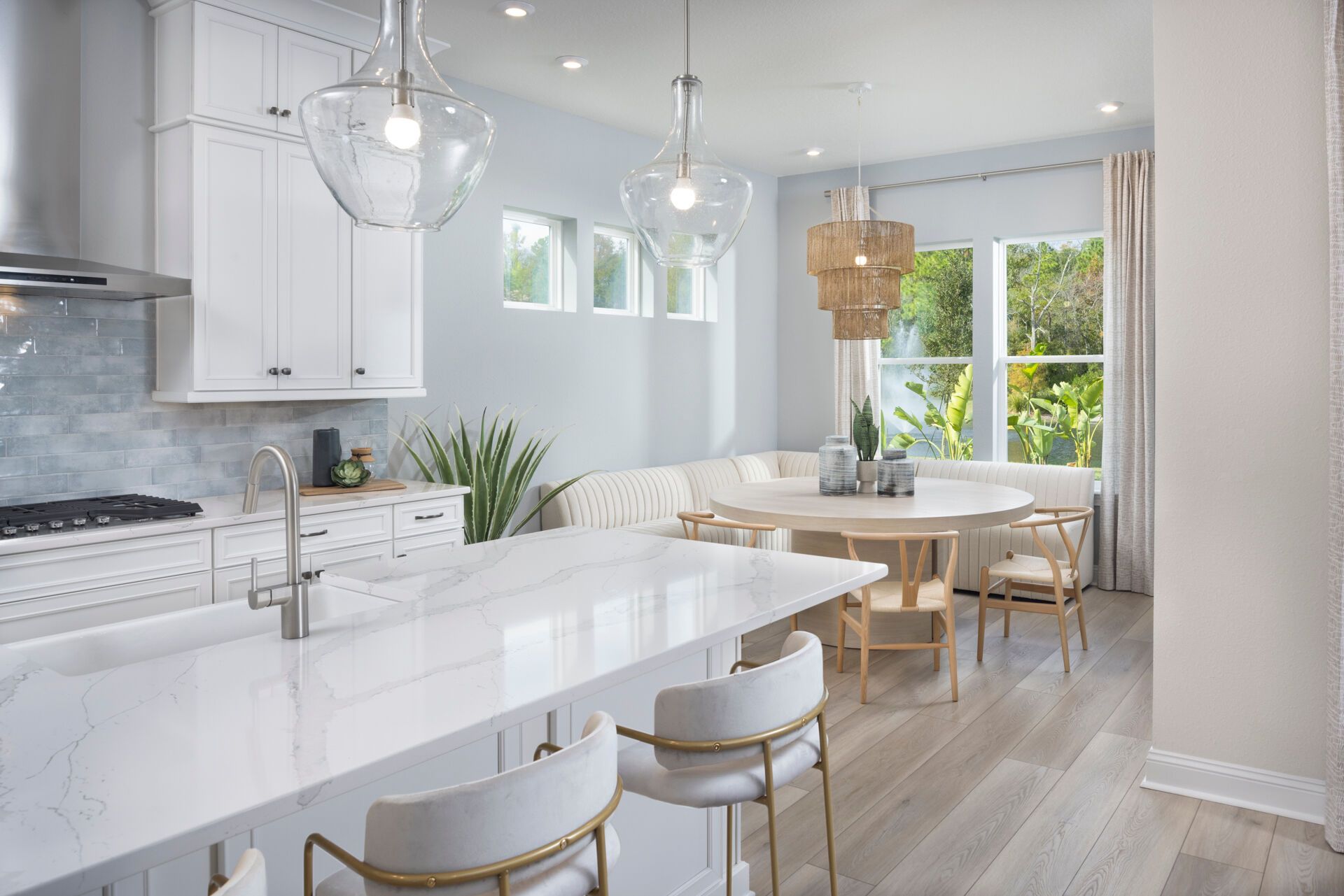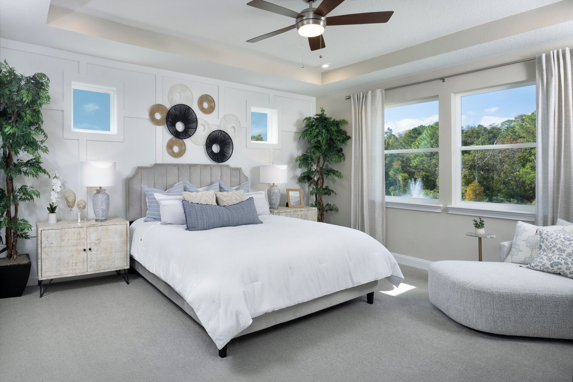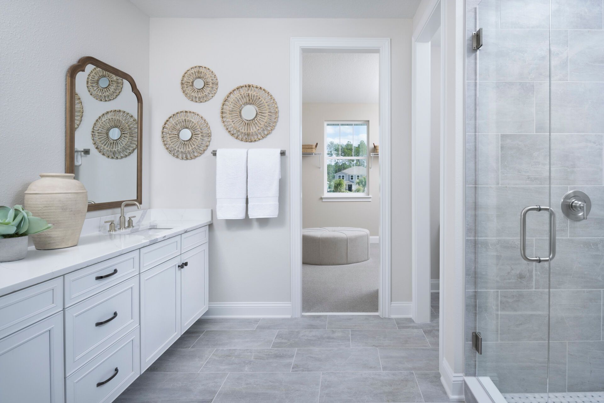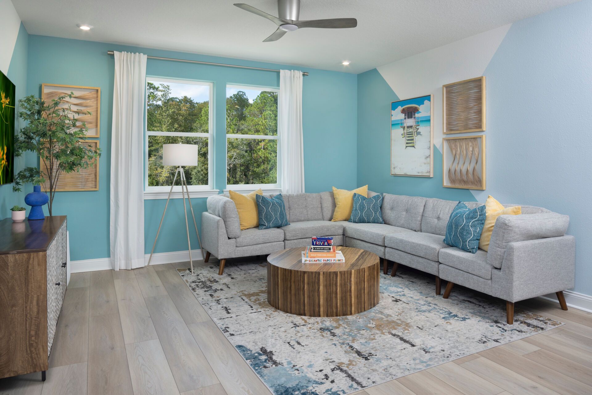 This Coastal Rowan has a welcoming foyer that's opens to the spacious and airy Great Room, washed with abundant light from the adjacent lanai. The island kitchen overlooks the Great Room and the dining room. The second floor, features a sumptuous owners suite and ample walk-in closet. The stairway from the foyer opens to an expansive loft that separates the suite of three upstairs bedrooms from the owners suite. The selected options for this Rowan are:Bedroom 5/bath 3 in lieu of flex room/powder, expanded covered lanai.
